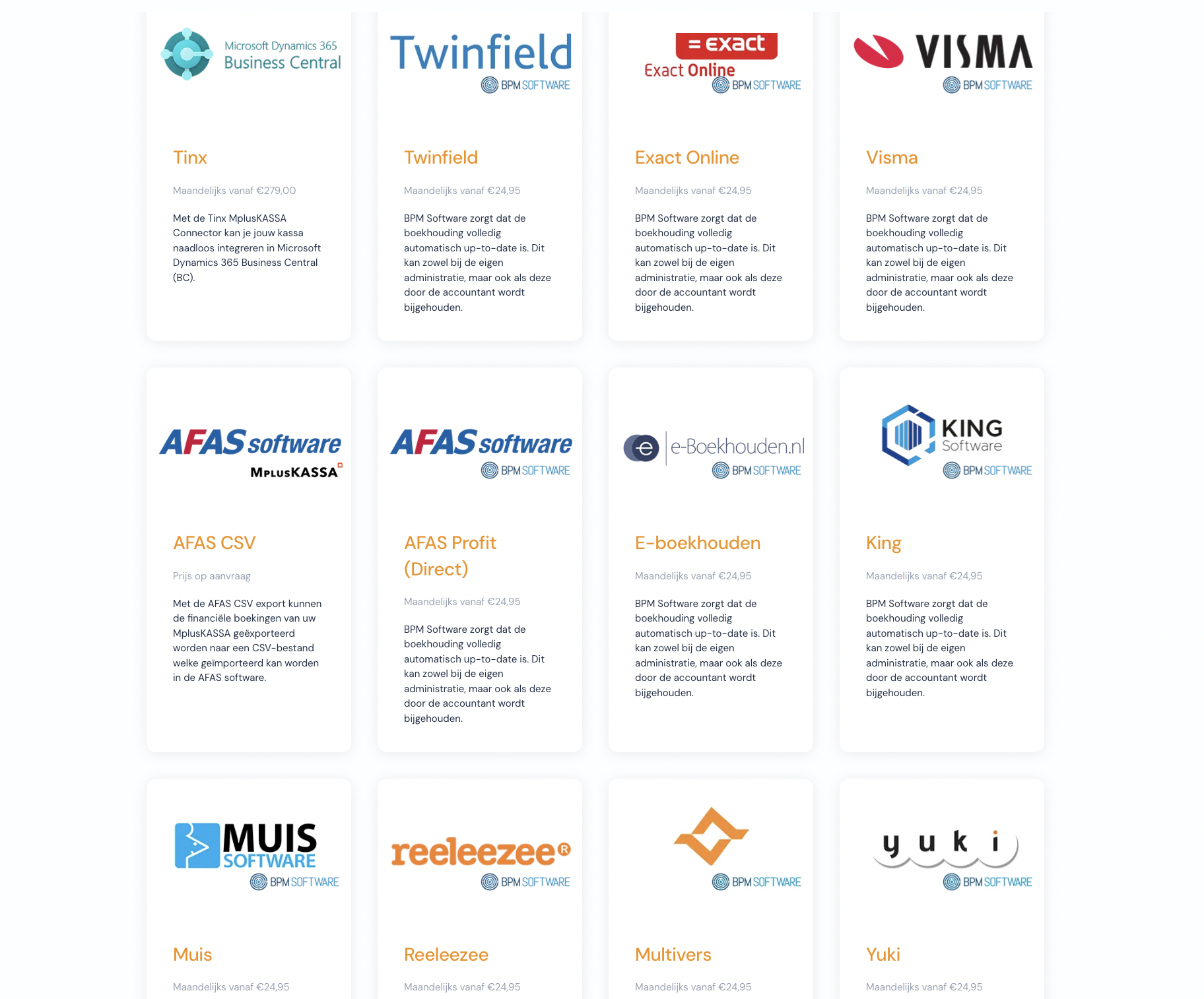 Veel moderne kassasystemen, zoals MplusKASSA, bieden integraties met boekhoudprogramma’s. Zo biedt MplusKASSA een koppeling met Exact, SnelStart, Twinfield, AFAS, Visma, E-boekhouden, King, Microsoft Dynamics, Multivers, Reeleezee, Scrada, SnelStart, Yuki, Tinx. Controleer of jouw kassa compatibel is met jouw boekhoudsoftware.
