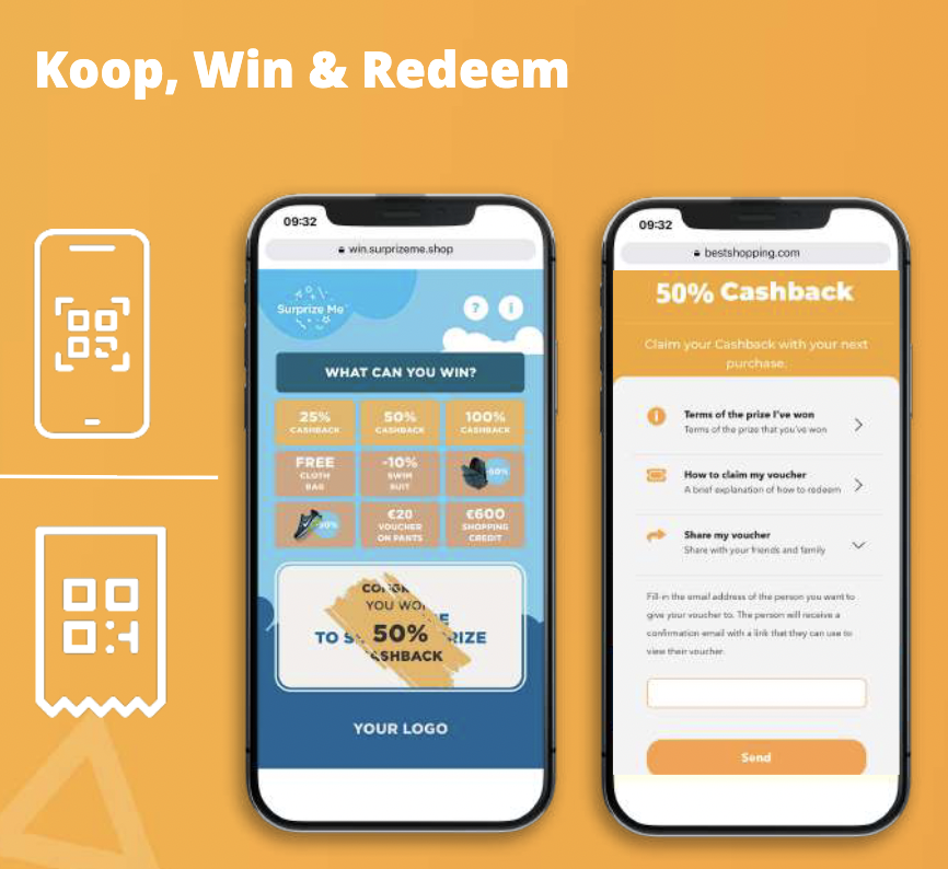Met Surprize Me wordt iedere kassabon een kans om klanten terug te laten komen. Op de bon verschijnt een unieke QR-code die met elke smartphone te scannen is. Elke scan levert een beloning op, van korting op een specifiek product tot een cashback die kan oplopen tot wel honderd procent. Het werkt alleen bij een herhaalaankoop, waardoor je klanten direct een reden geven om terug te komen.