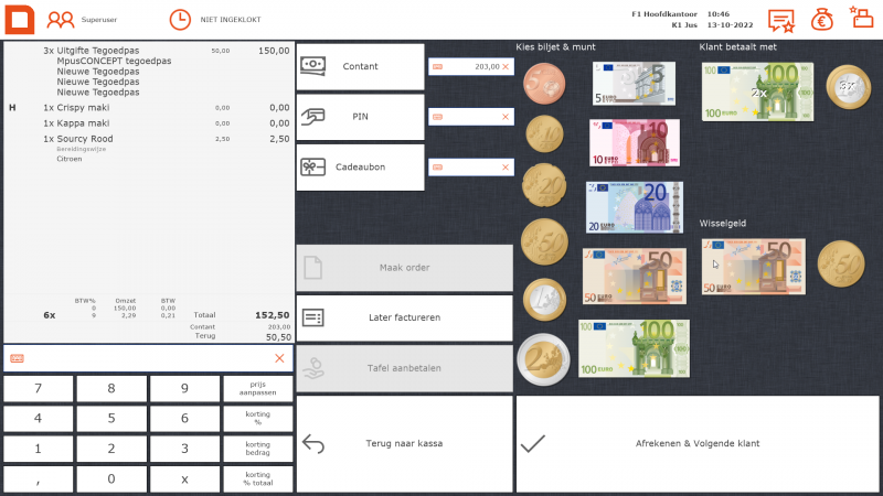 Door de visuele weergave van biljetten en munten hoeft niemand meer uit te rekenen wat de klant terugkrijgt. Dit voorkomt het maken van fouten bij het teruggeven van het wisselgeld. De kassa software berekent de meest efficiënte munt- en biljetteruggave.