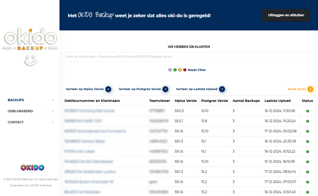 Onze eigen back-updienst maakt dagelijks automatisch een back-up en bewaart de laatste drie dagen. Zo ben je beschermd tegen storingen, hardwareproblemen en fysieke schade. Bij nieuwe klanten wordt Okido Backup standaard geïnstalleerd bij het kassasysteem, zodat je direct zorgeloos kunt ondernemen.